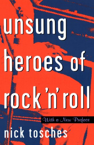 I must embarrassingly admit that this is the first Tosches book I've read. His name is uttered in the same hallowed tones as Bangs and Meltzer by all those in the know, and his name has popped up in my radar for two decades now, but it's 2010, I'm 38 and, until just recently, a Tosches virgin. I'll be back for more. He's funny as shit, foul-mouthed, humourous, disdainful of just about anything not seen as the real deal and can pen a sentence which is capable of blowing my piddley mind. Unsung Heroes... is made up of a collection of what were originally small articles he wrote for Creem magazine strung together as chapters detailing individual artists who fit the bill as unsung heroes. Some are slightly less unsung in the year 2010 than they were in 1984, but few are household names. The introduction spills the dirt on what he sees as the subsequent 30-year corruption of rock & roll into a dull parade of thoroughly unexciting pre-manufactured "bad boy" twaddle designed for the masses, and then it heads for the goods. Of course, being published in 1984, and then revised again in the '90s, the prefaces/introductions throw in a few thoroughly dated jabs at the likes of MTV, Billy Idol, Guns 'n' Roses and The Boss, but it's all about setting the scene and establishing what the book isn't about. The individual chapters are the meat you gotta chew on.